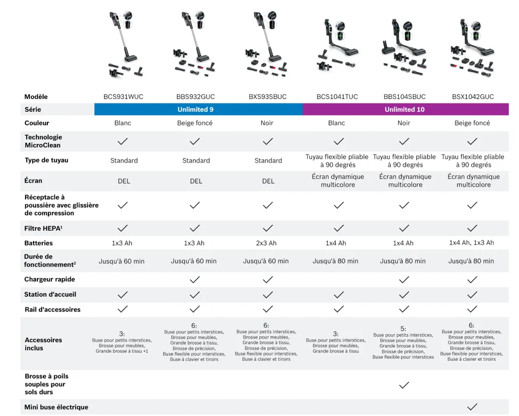 Libérez toute la puissance de nettoyage des aspirateurs sans fil Bosch Unlimited, conçus pour ceux qui exigent le meilleur. Grâce à la technologie MicroClean, nos aspirateurs Unlimited redéfinissent le nettoyage en éliminant plus de 99,9 % de la poussière [1], même les particules les plus fines.