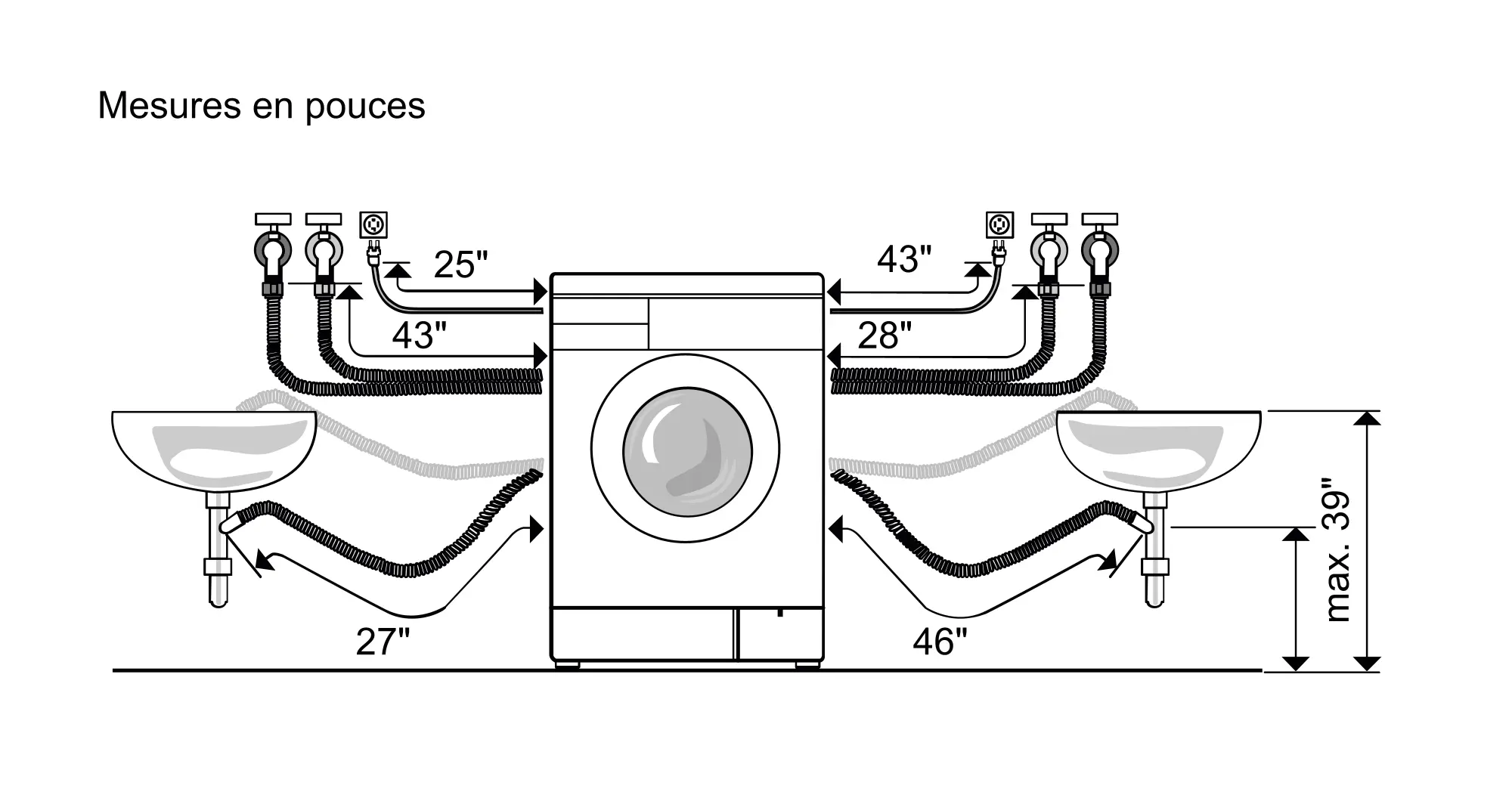 Dimensions globales de l'appareil (H x L x P) (po)