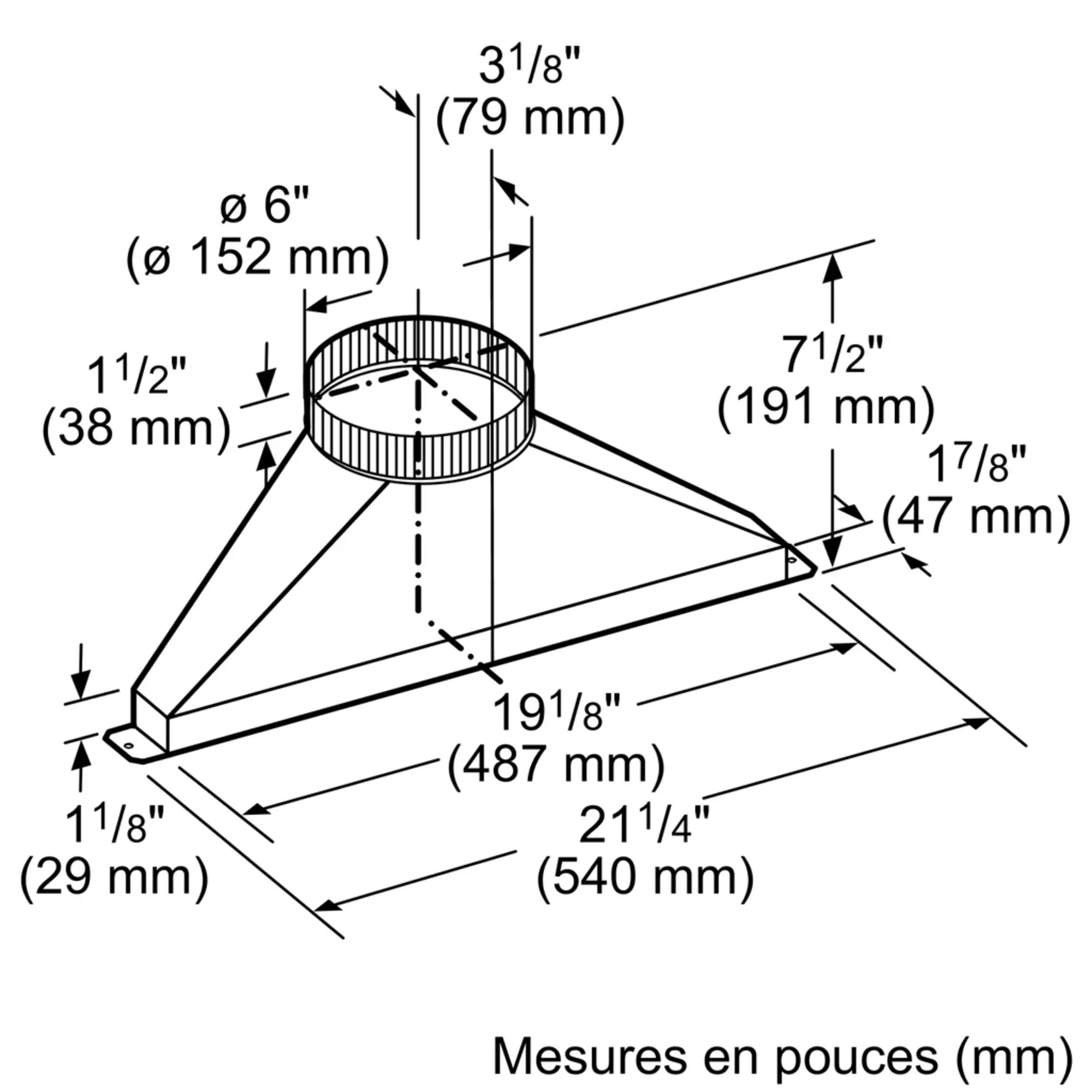 Transition d'un conduit rectangulaire de 1 7/8 po x 19 po vers un conduit rond de 6 po